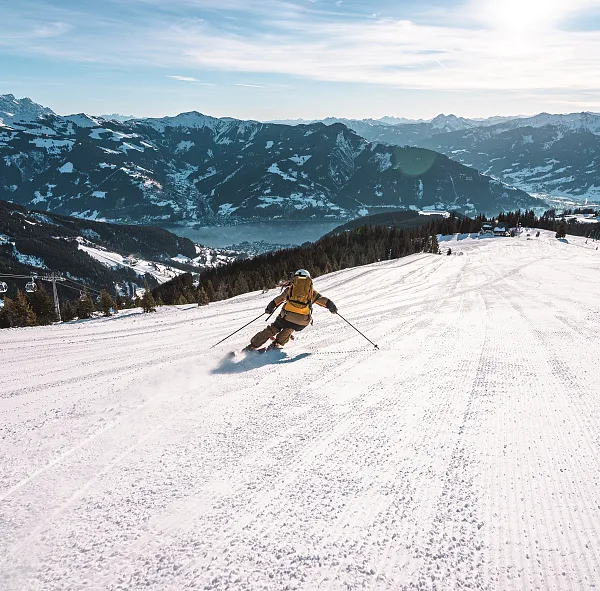 Welcome to the Schmittenhöhe, your year-round leisure paradise! In winter, if you go skiing on the Schmittenhöhe, you’re spending a day at the sunny one of the Salzburger Land region’s ski resorts. Because 80 percent of the slopes are in perfectly sunny locations. Winter sports fans can enjoy their time to the fullest on 77 kilometres of slopes – all of them as varied as you wish and perfect for beginners, returners and passionate skiers. What else makes the Schmitten so popular? The stunning panoramic views of Lake Zell, the Kitzsteinhorn glacier and more than 30 three-thousand-metre mountains.