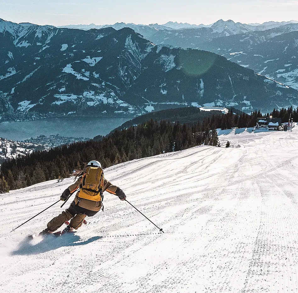 Skiing on the Schmittenhöhe in Zell am See promises pure fun and variety for both families and avid winter sports enthusiasts eager to cover tons of vertical metres. Whether it’s tackling the steep Trass descent or learning to ski on Glocknerwiese with the help of Schmidolin, the Schmitten dragon: Nearly every ski run at the resort boasts breathtaking views of the unique mountain scenery and Lake Zell. During lunch and breaks, skiers and snowboarders can unwind at the numerous huts and restaurants scattered across the Schmitten.